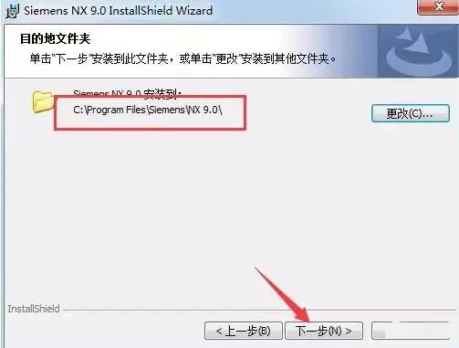 18.如需修改安装路径,点击更改,直接将C修改为你需要安装到的盘,本例安装到C盘,点击下一步。