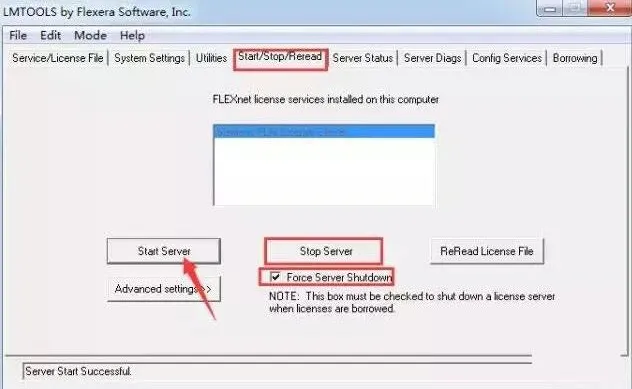 27.在Start/Stop/Reread页面中选中下方复选框,点击Stop Server,然后点击StartServer,在下方显示Server StartSuccessful,关闭窗口。