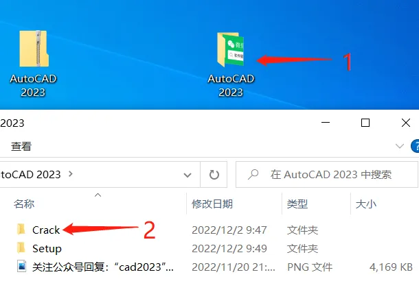 1、关注本公众号后回复“autocad”,即可获取下载地址(定期维护),下载该压缩包后移动到自己方便后续操作的位置。小编这里将下载的“AutoCAD2023”压缩包移动到桌面并右键解压到当前位置,方便安装后即将安装包删除。