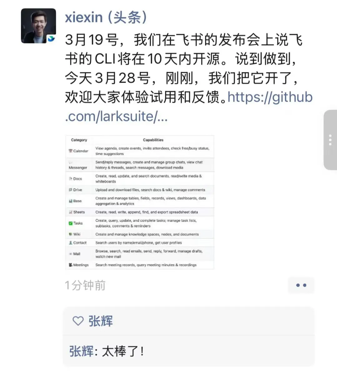 飞书 CLI 开源了。