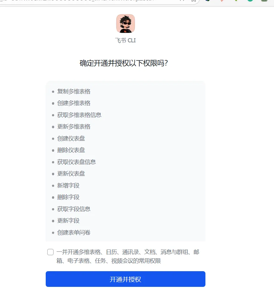 lark-cli auth login --recommend又吐出一个链接。