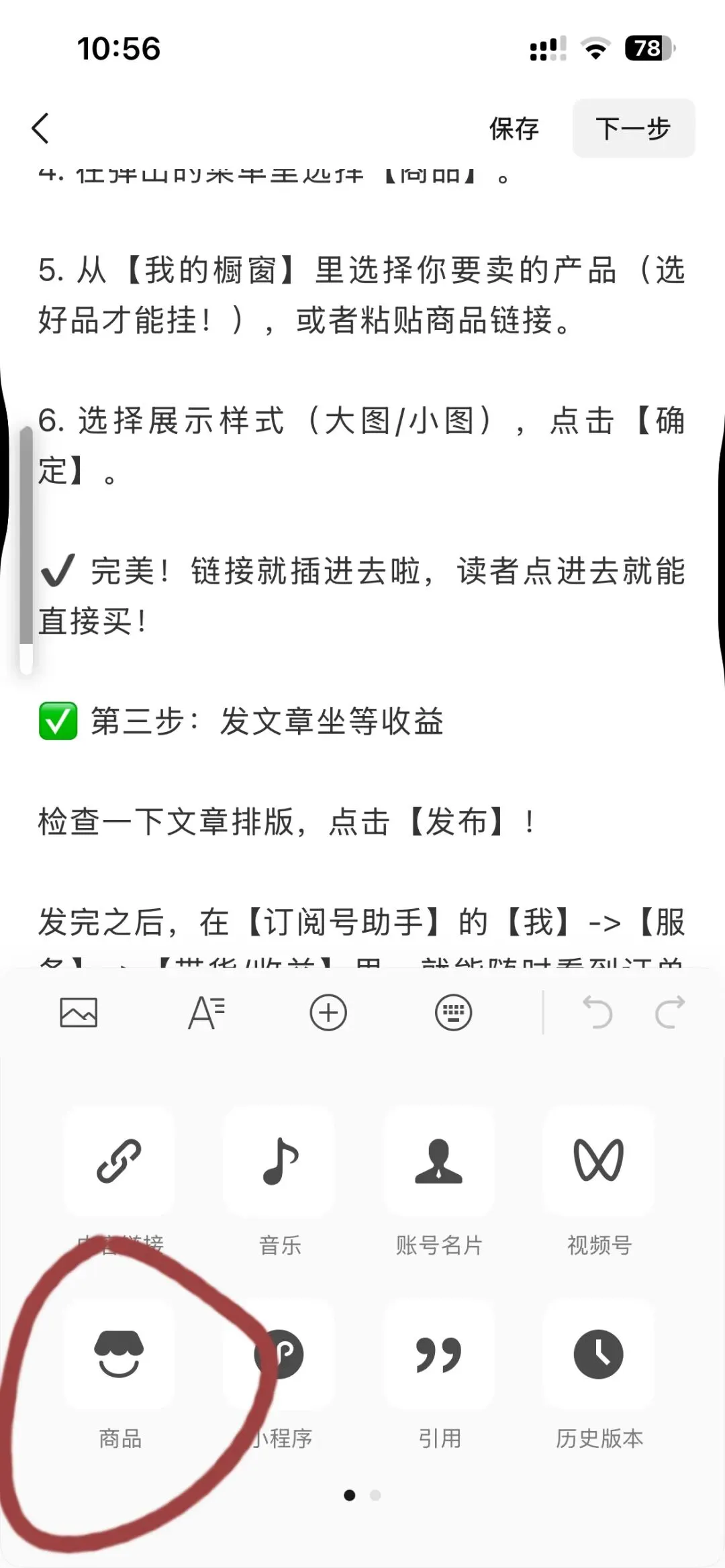 ✅ 第二步:手机写文 + 插入商品链接(核心)