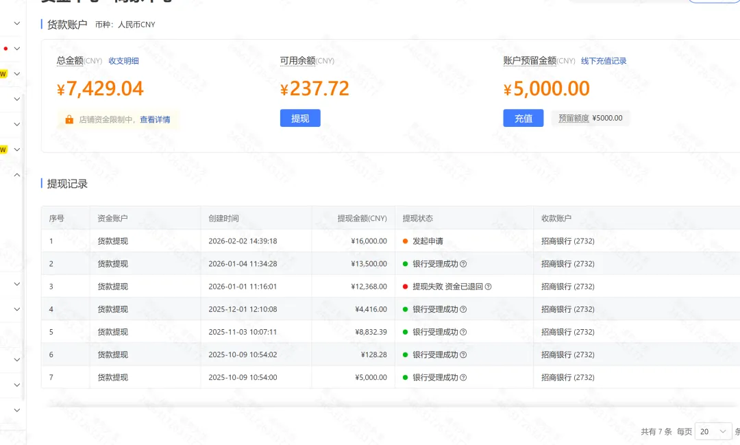 说这么多,直接给大家看一个我们其中一个店铺的完成流水,从开店我现在的所有流水。