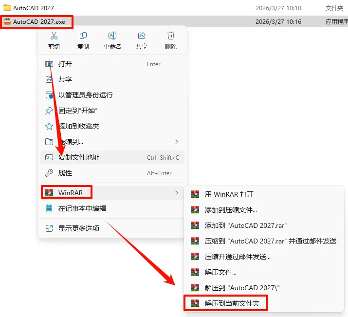 1.选中下载的压缩包,然后鼠标右键选择“解压到当前文件夹”(没有解压选项点这里)