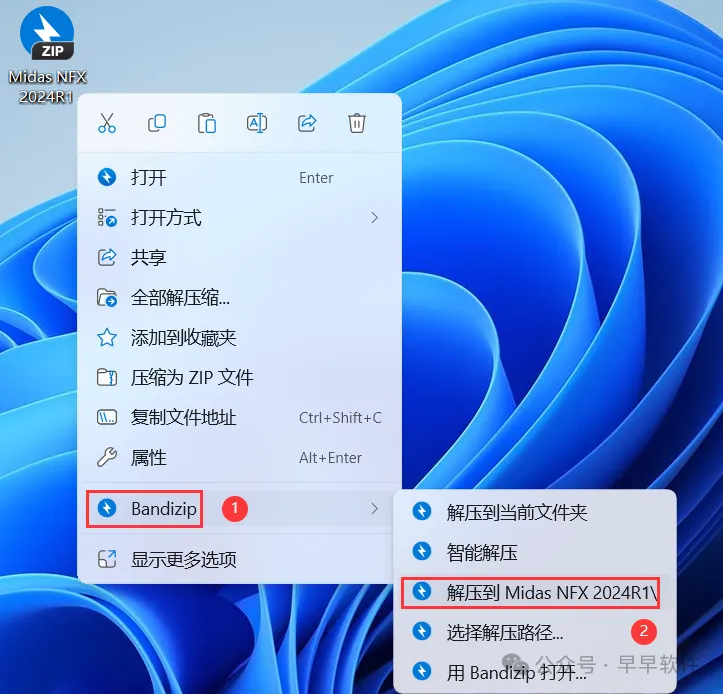 1、下载Midas NFX 2024R1软件安装包到电脑上,右键选择【解压到Midas NFX 2024R1\】