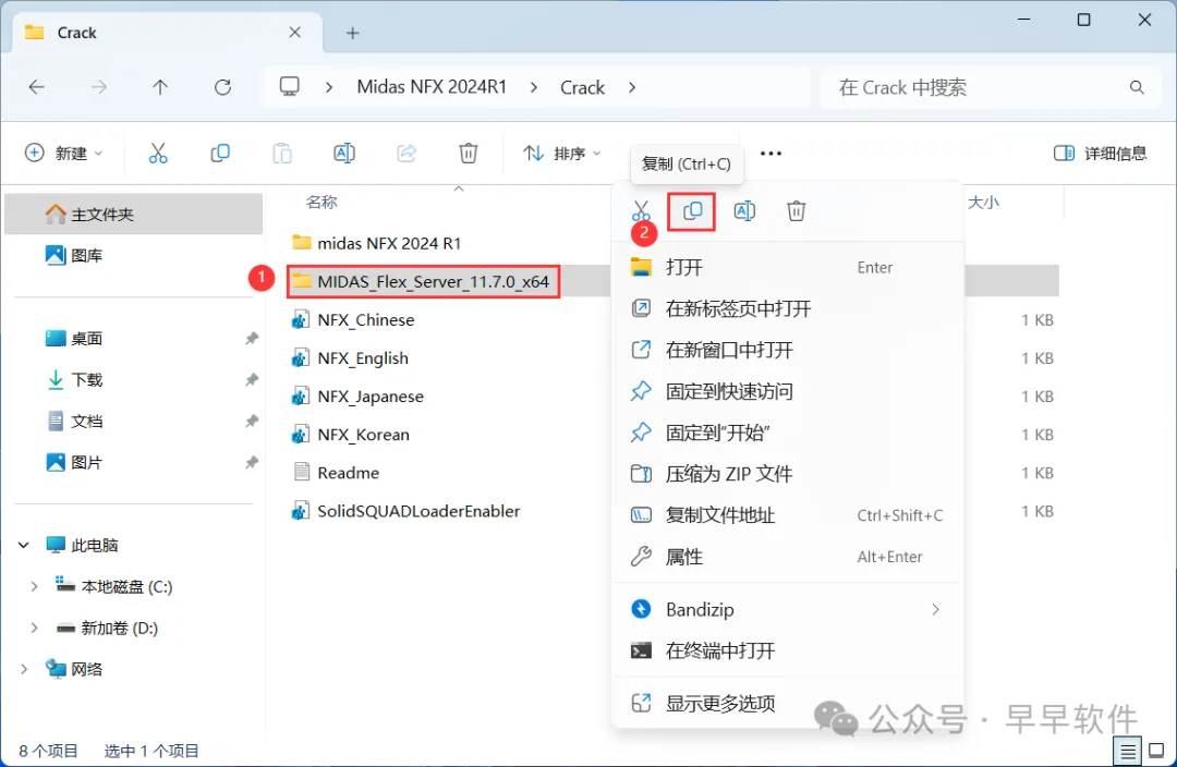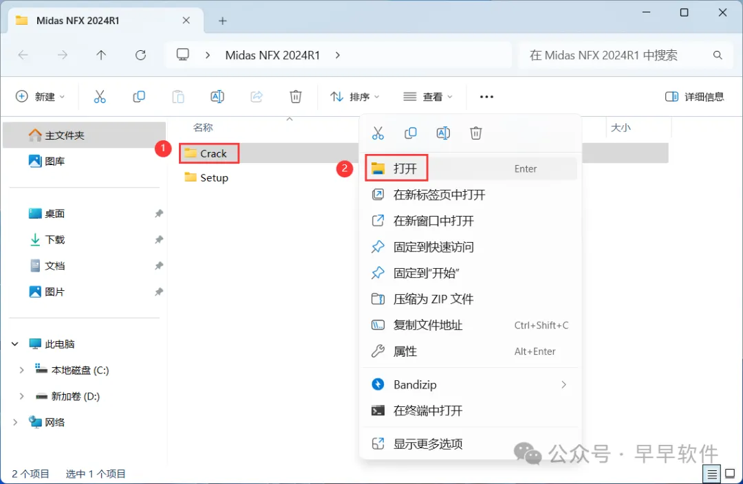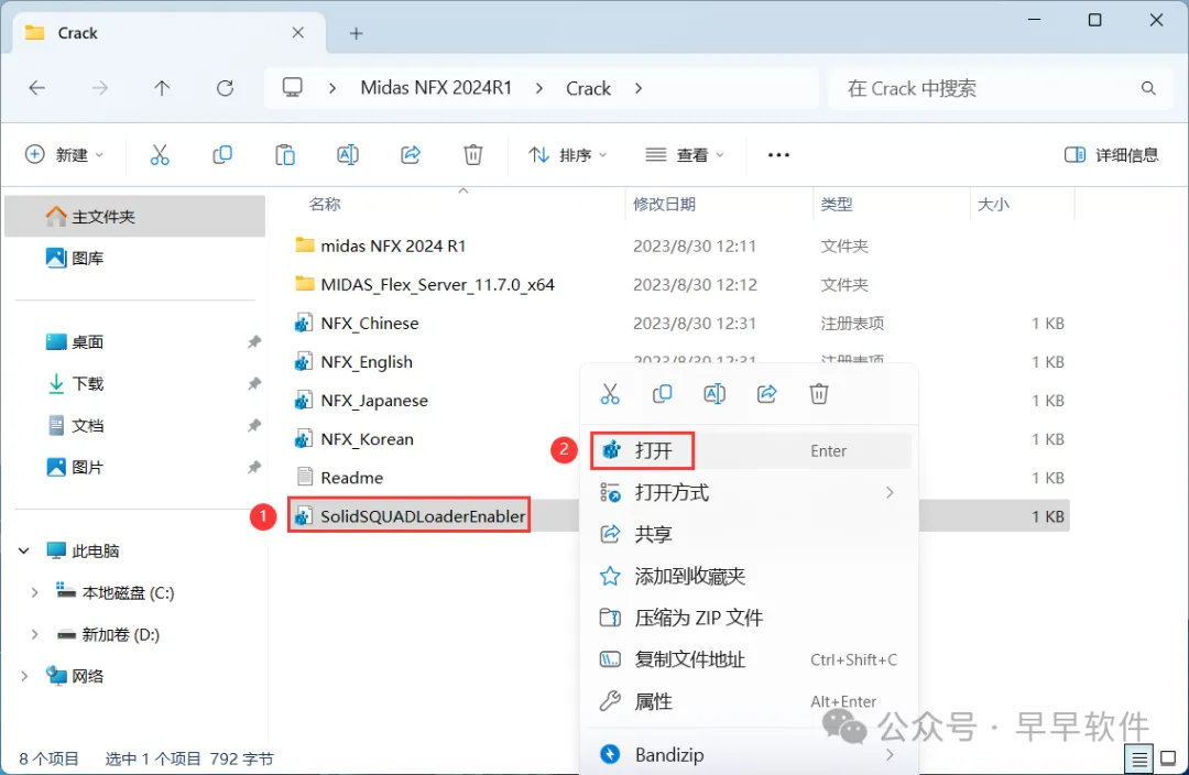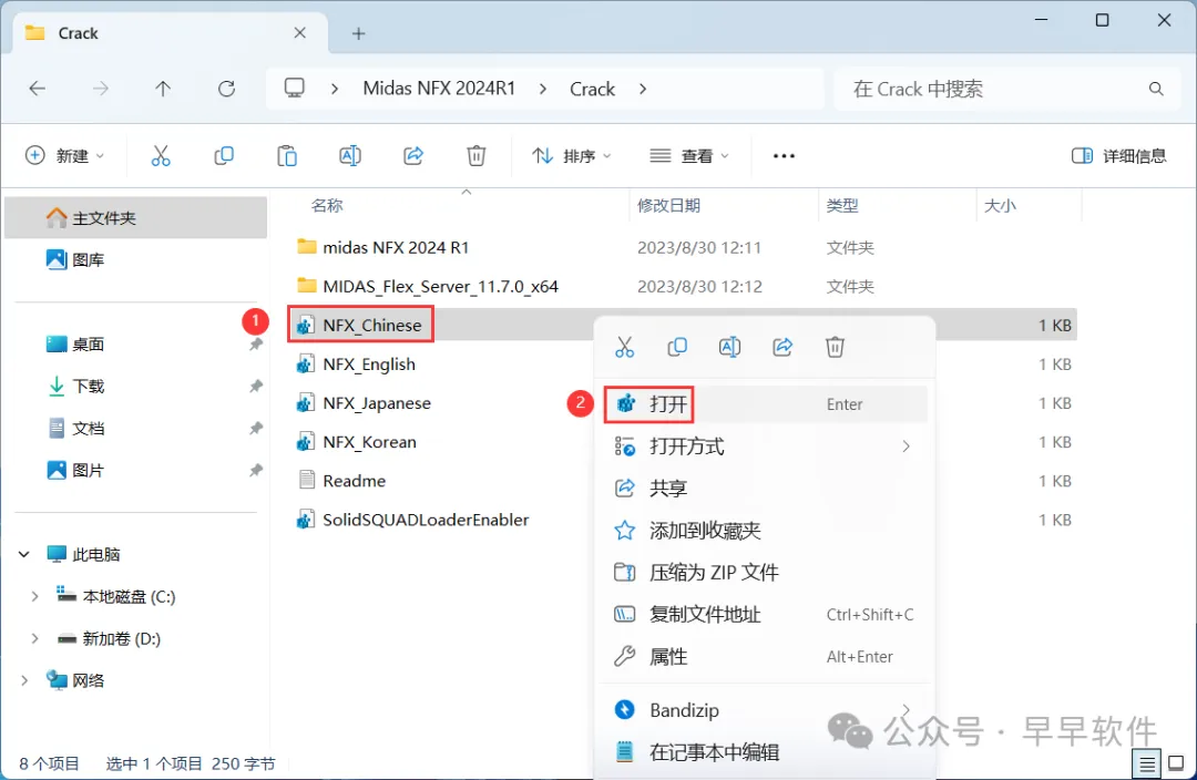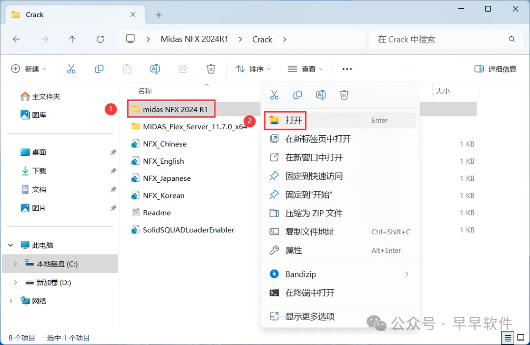 20、回到Crack文件夹,找到【midas NFX 2024 R1】文件夹,右键【打开】它