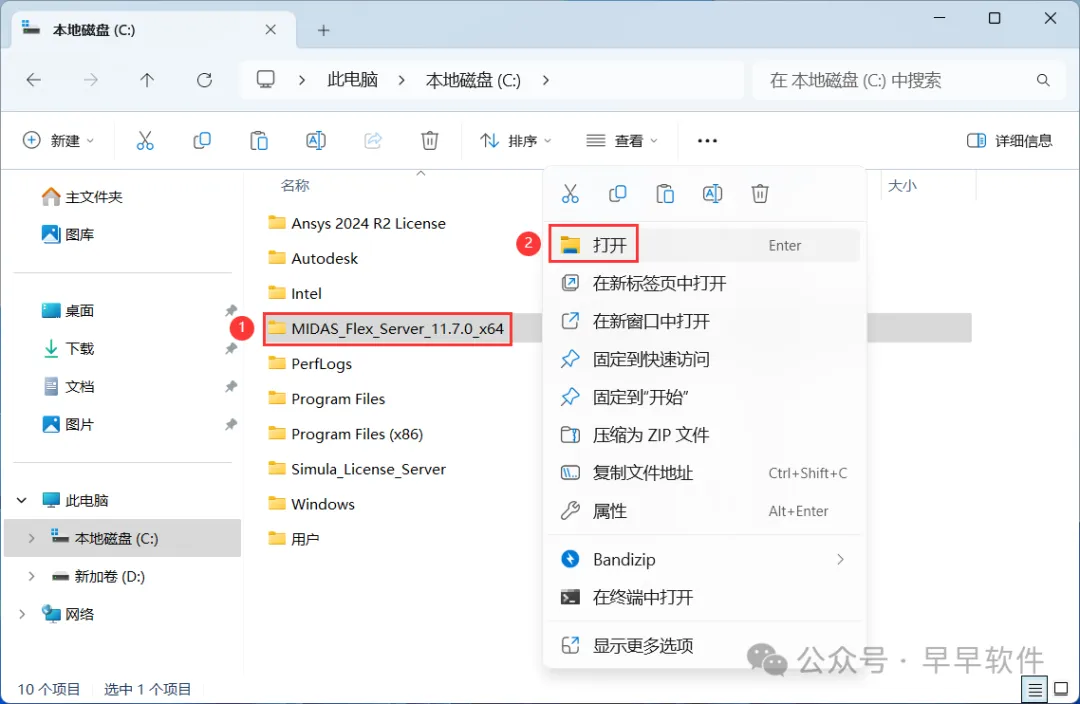 6、找到粘贴的【MIDAS_Flex_Server…】文件夹,右键【打开】它