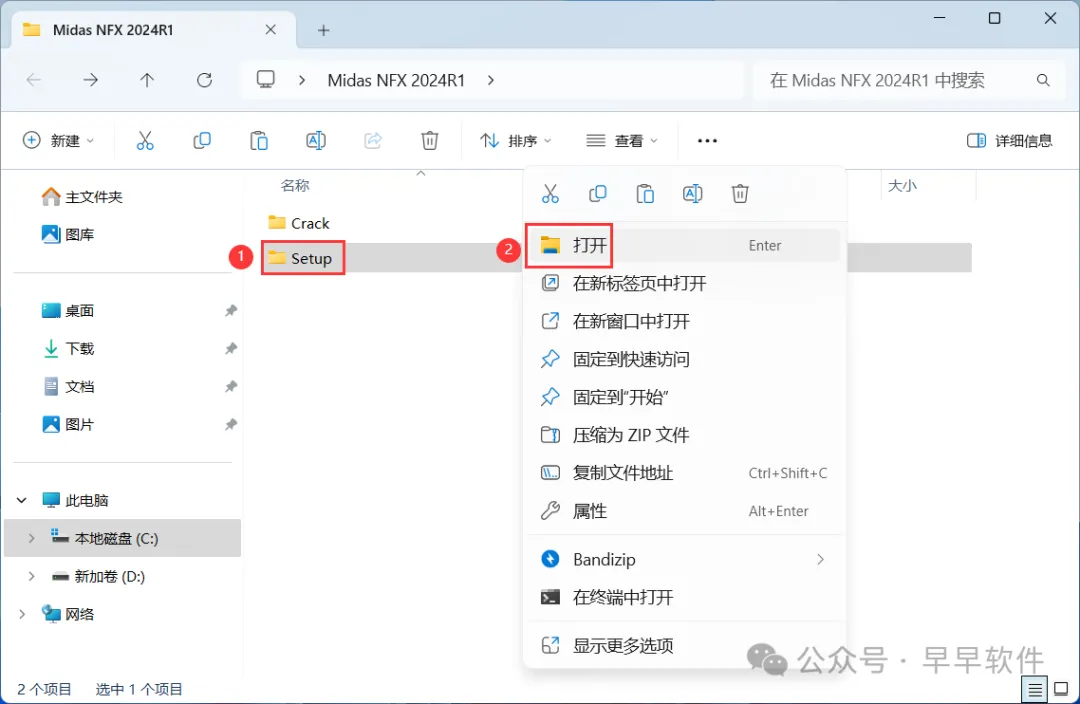 9、回到Midas NFX 2024R1文件夹,找到【Setup】文件夹,右键【打开】它
