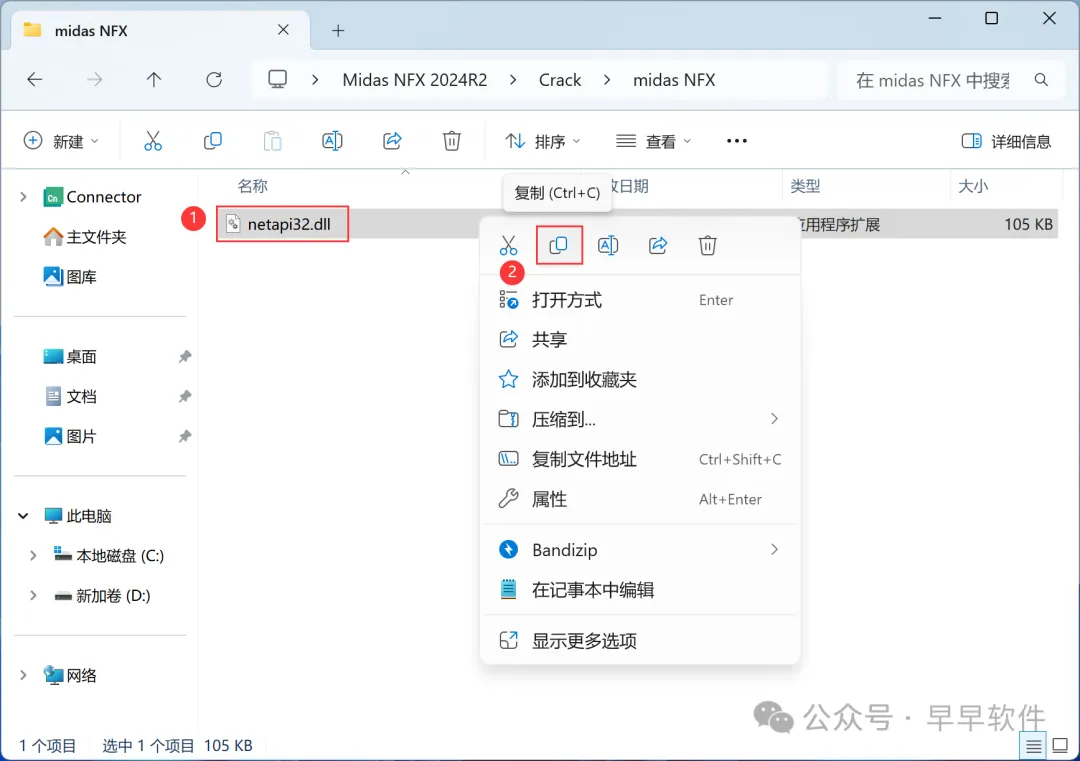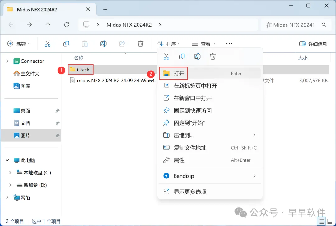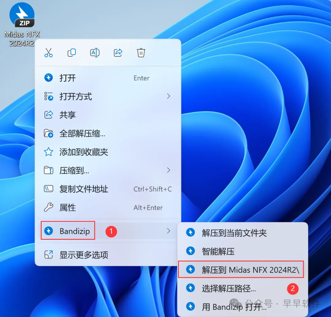 1、下载Midas NFX 2024R2软件安装包到电脑上,右键选择【解压到Midas NFX 2024R2\】