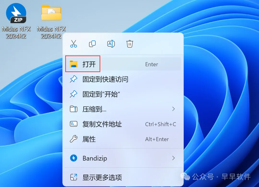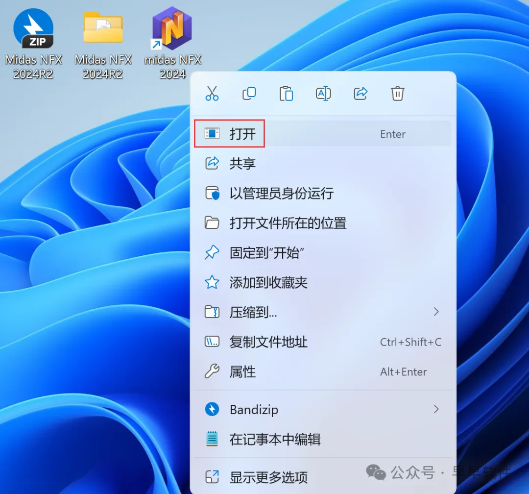 31、回到桌面,右键桌面上的【midas NFX 2024软件图标】,点击【打开】