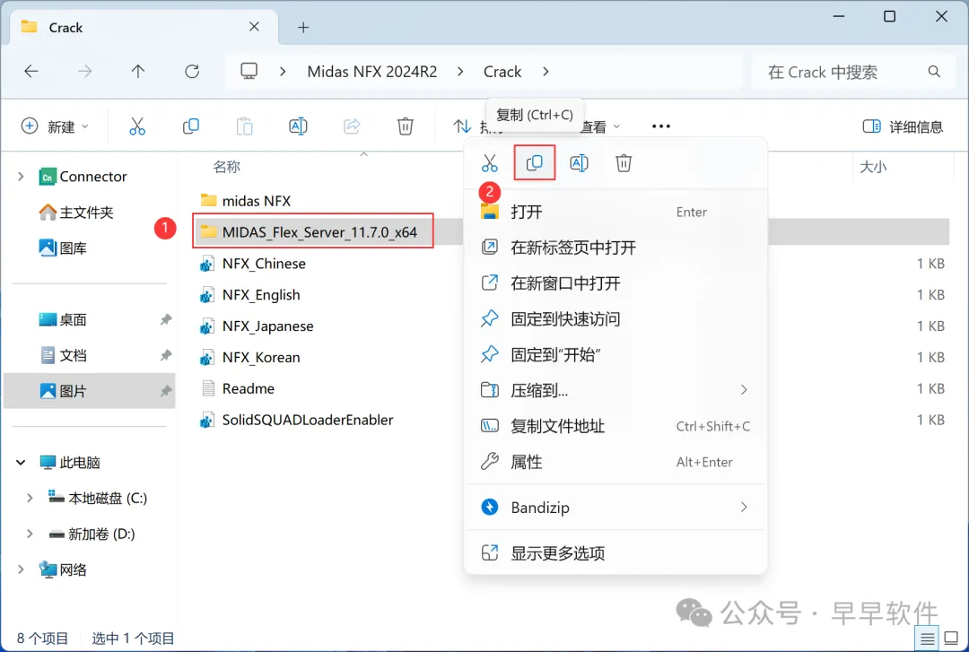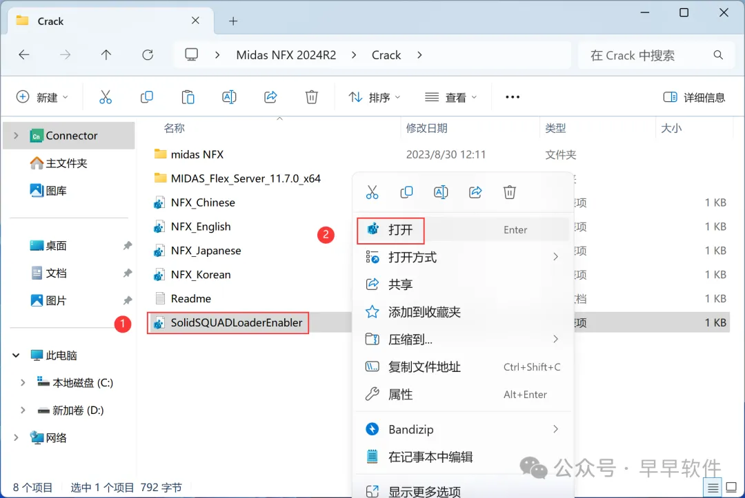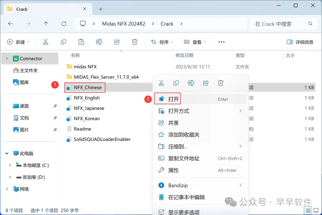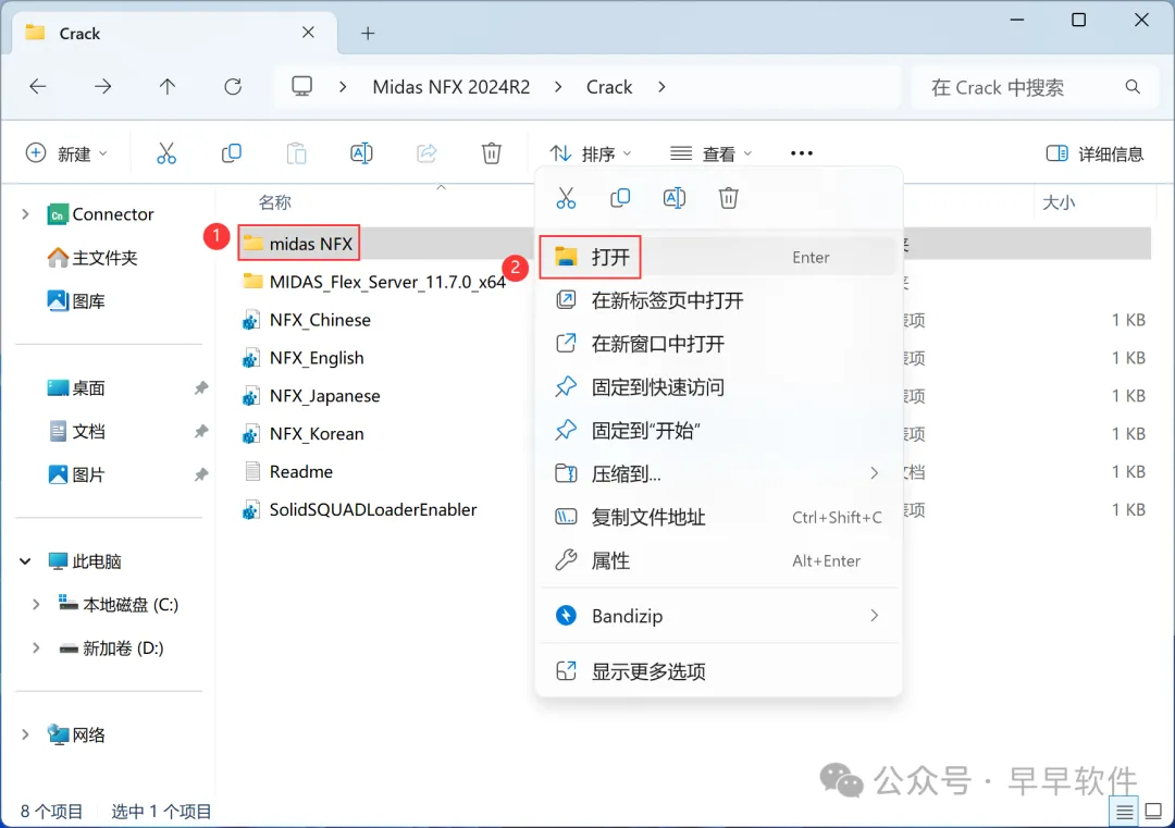 21、回到Crack文件夹,找到【midas NFX】文件夹,右键【打开】它
