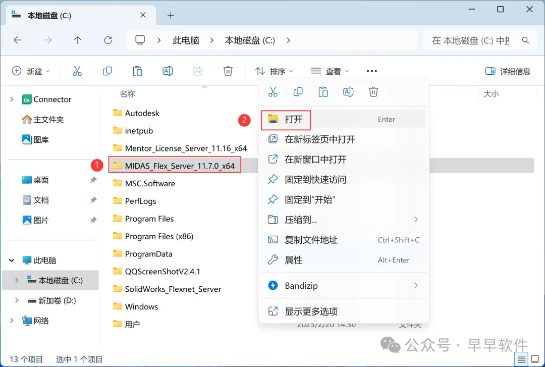 6、找到粘贴的【MIDAS_Flex_Server…】文件夹,右键【打开】它