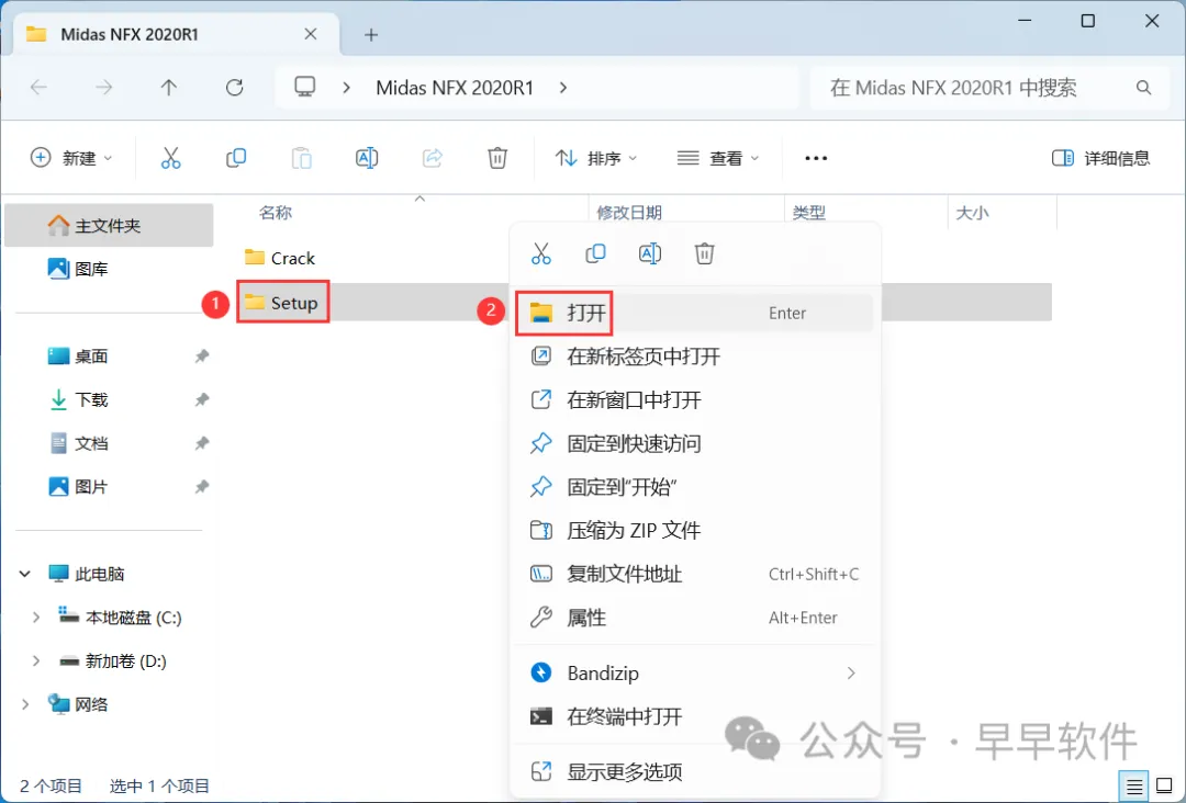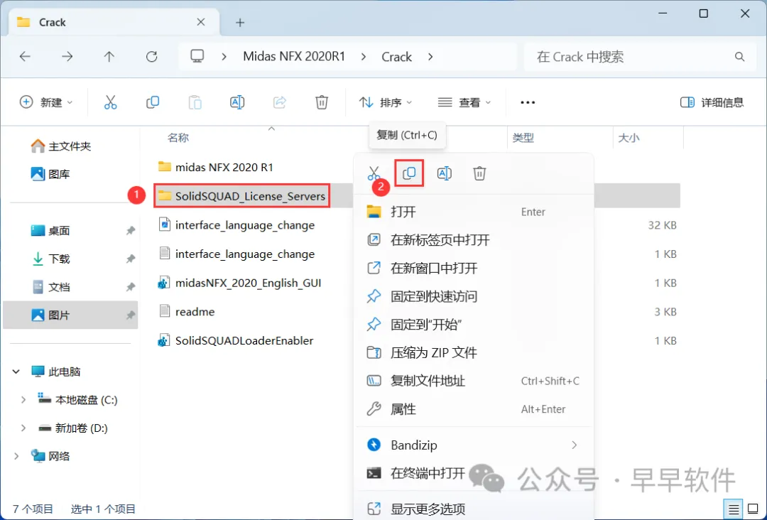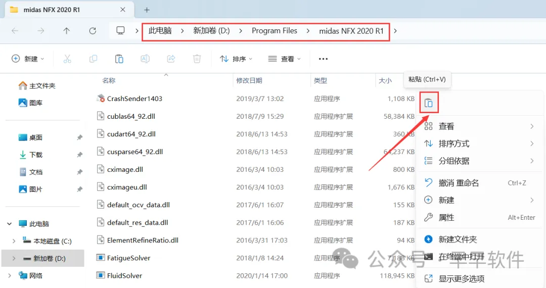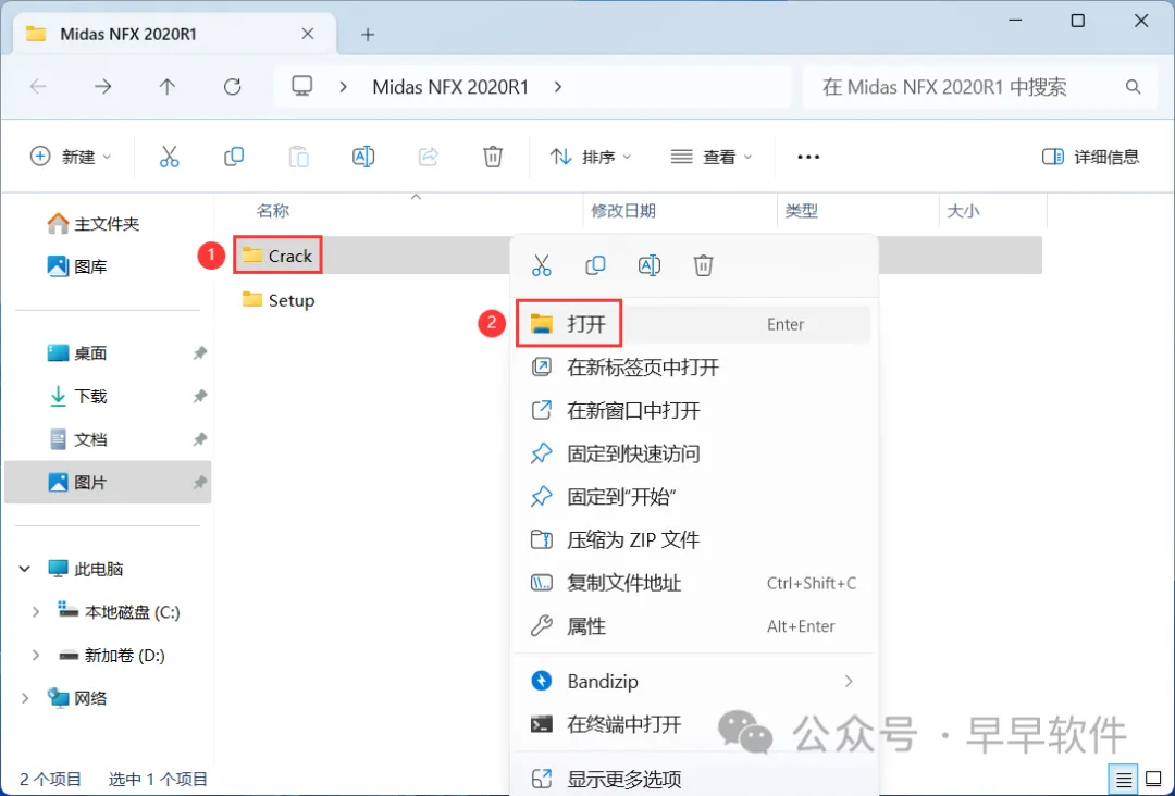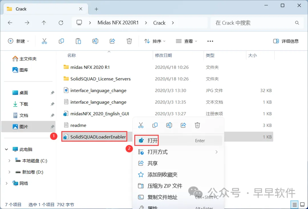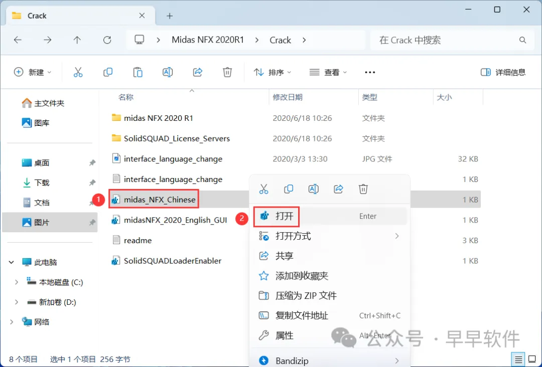 15、回到Midas NFX 2020R1文件夹,找到【Crack】文件夹,右键【打开】它