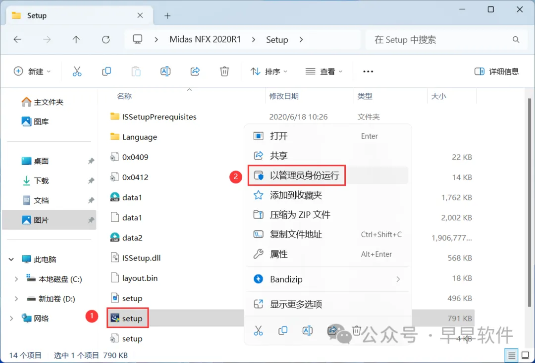 1、下载Midas NFX 2020R1软件安装包到电脑上,右键选择【解压到Midas NFX 2020R1\】