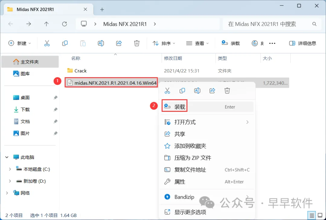 3、找到【midas.NFX.2021.R1】文件,右键点击【装载】