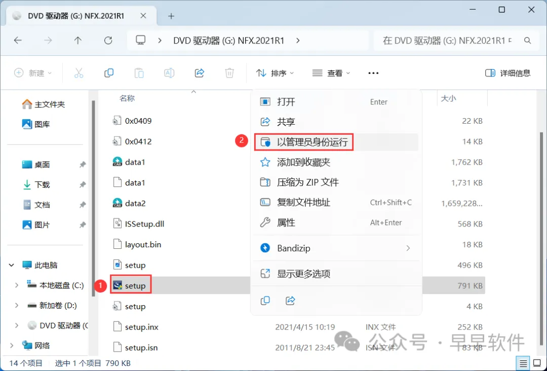 4、找到【setup】应用程序,右键选择【以管理员身份运行】它