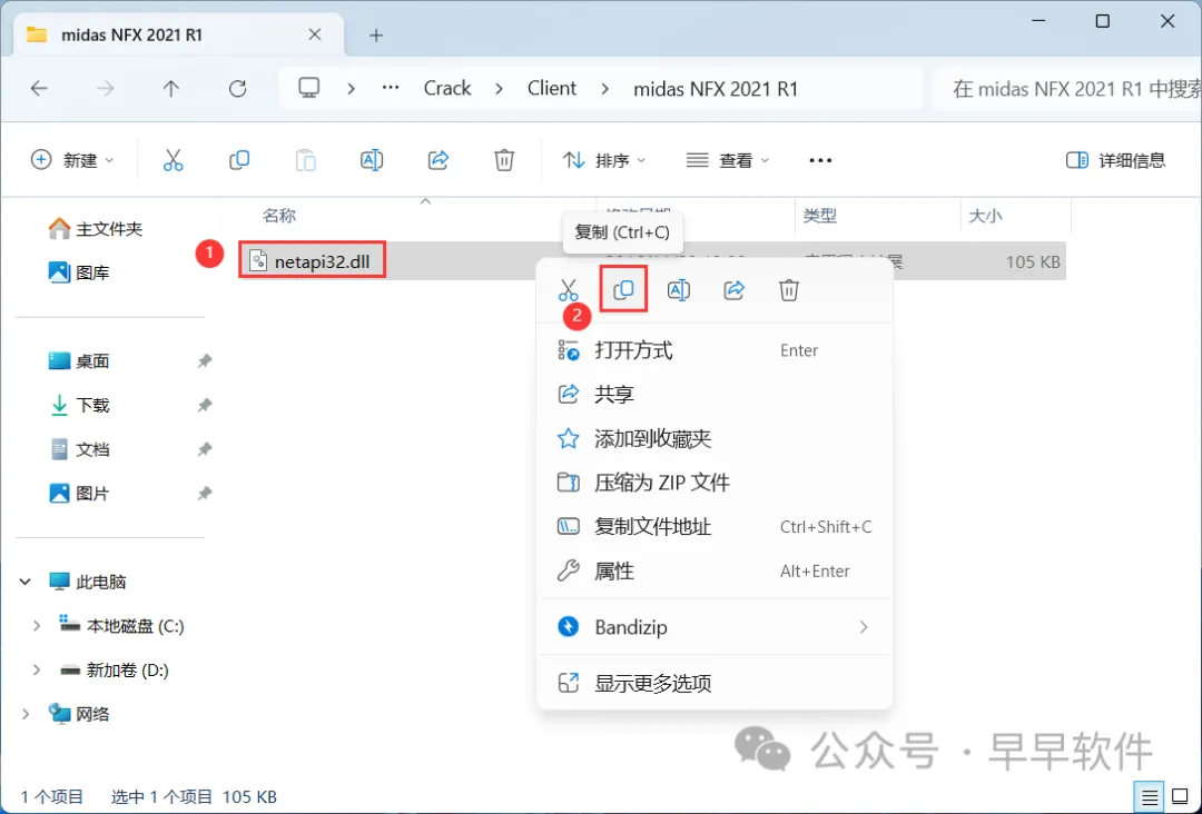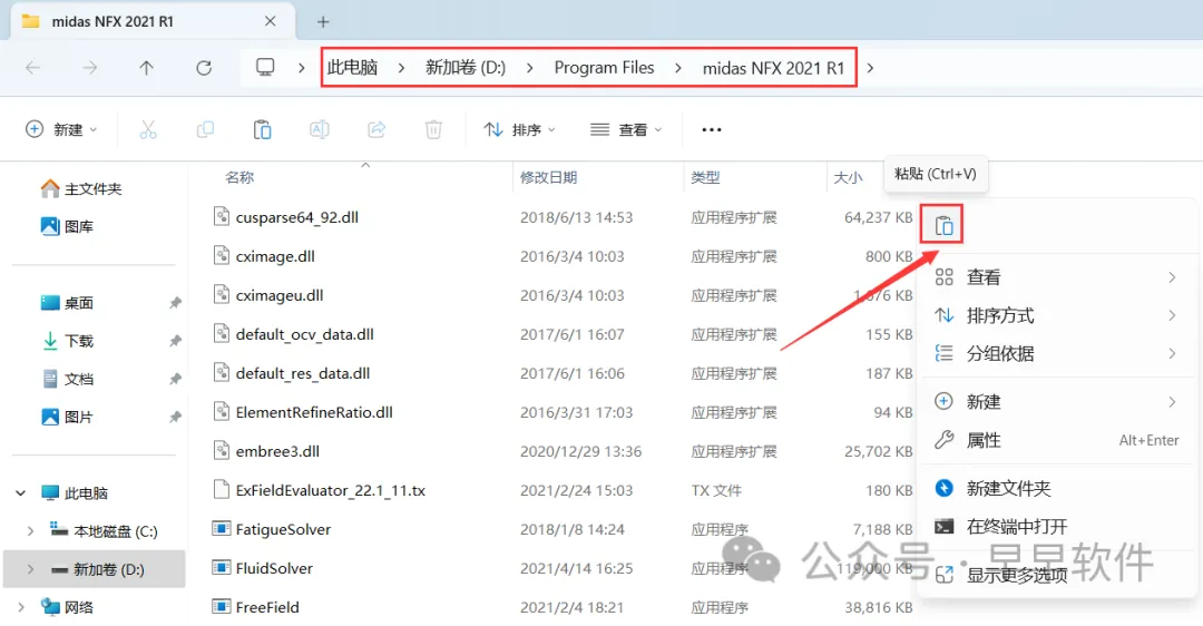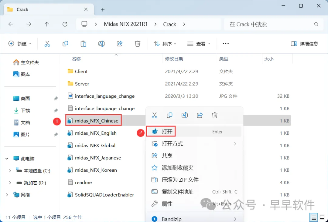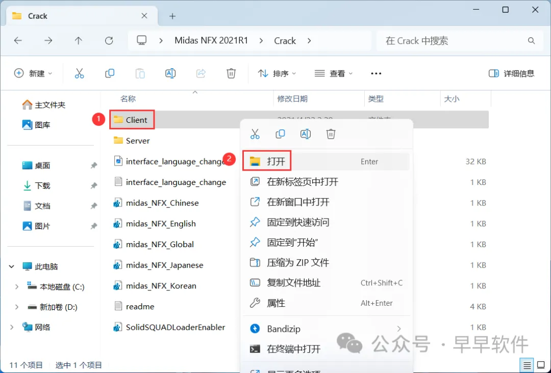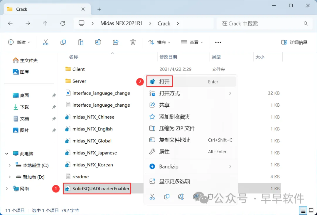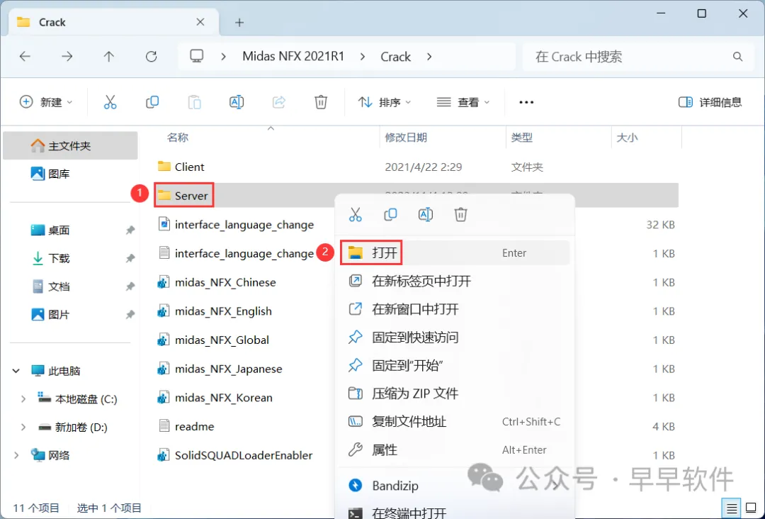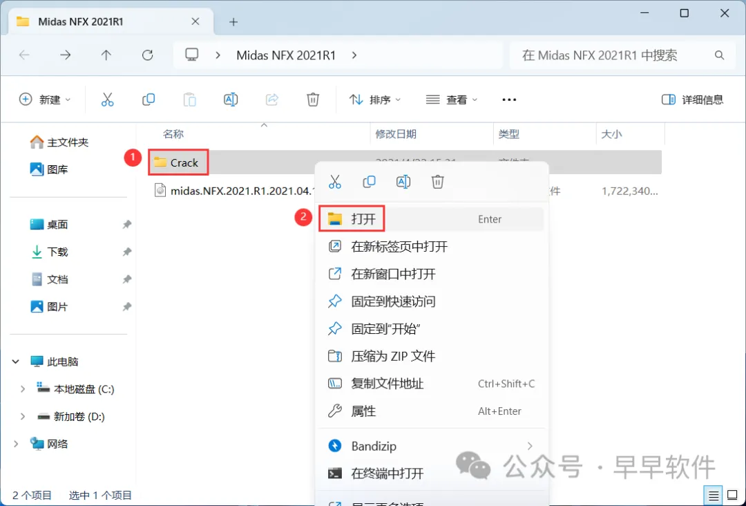 15、回到Midas NFX 2021R1文件夹,找到【Crack】文件夹,右键【打开】它