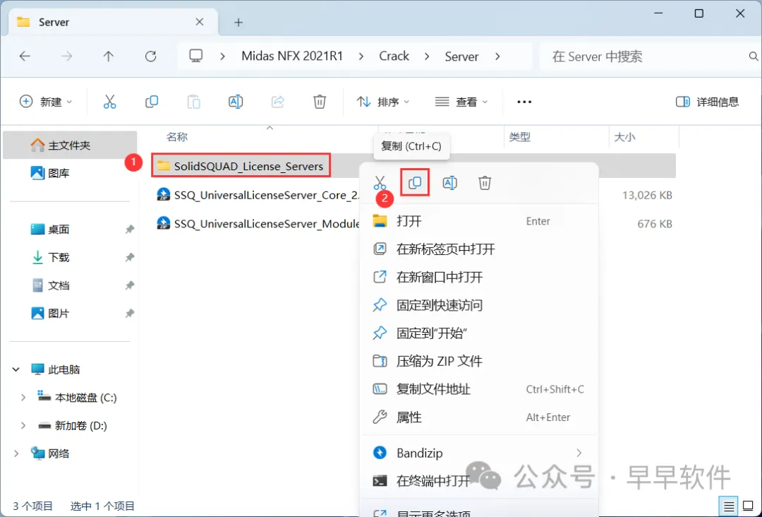 17、找到【SolidSQUAD_License_Servers】文件夹,再右键点击【复制按钮】