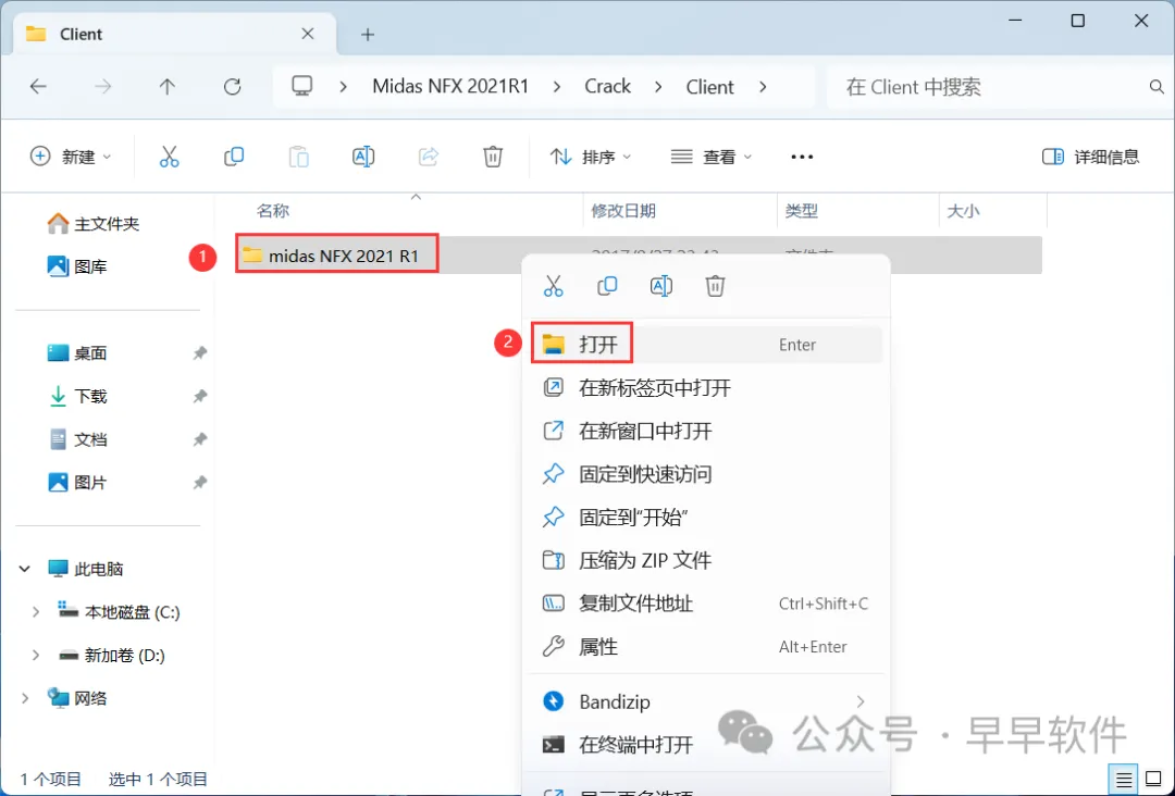23、找到【midas NFX 2021R1】文件夹,右键【打开】它