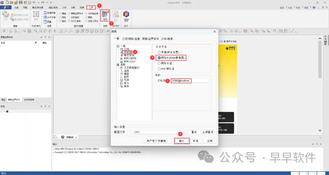 34、依次点击【工具】、【选项】、【许可证】、【网络许可证】,主机号输入:27800@localhost,再点击【确定】