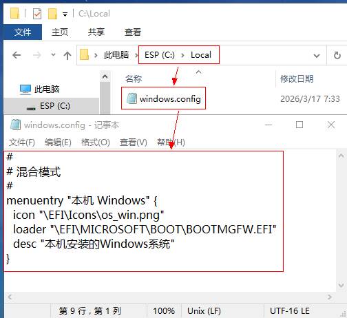 WePex64环境,桌面dism++以管理员身份运行,点击虚拟磁盘中的Windows 11系统,打开会话 b.修复虚拟磁盘Windows系统的引导到虚拟磁盘的esp分区 c.修复虚拟磁盘Windows系统的引导到虚拟磁盘的esp分区 说明:这一章节中,由dism++部署的.vhdx属于L0级,L0级.vhdx第一次启动只能由本地ESP分区的Windows Boot Manager启动,并在完成Windows的OOBE后成熟为L1级.vhdx 六、部署Windows Boot Manager到云固件 上述“引导修复”的操作已经在本地所有ESP分区中准备好了WBM( Windows Boot Manager ),接下来就是将其部署到云固件环境中。 1.所有本地 ESP分区 下,新建vd.config,写入以下代码: # 混合模式下的本机Windows Boot Manager include \Local\windows.config2.所有 本地 ESP分区 下,新建 Local文件夹,并在 Local下新建windows.config ,写入以下代码: # 混合模式 menuentry "Windows Boot Manager" { icon "\EFI\Icons\os_win.png" loader "\EFI\MICROSOFT\BOOT\BOOTMGFW.EFI" desc "Windows启动管理器" } 重启电脑,选择本地ESP分区的Windows Boot Manager,系统自动引导.vhdx启动后,开启设置并完成OOBE (可能多次重启)。特别地,在“让我们为你连接到网络”的界面,按下 Shift + F10 打开命令提示符,输入以下命令并按回车: 界面会立即刷新,直接弹出创建本地用户的窗口,你可以直接输入用户名和密码来完成设置 。