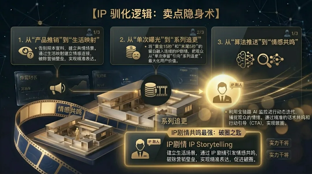 我驯化这套 IP 内容生产模版,就是想帮房产人找回那份“讲故事”的能力。技术能帮我们精准定位客群,但唯有真诚的故事,能跨越屏幕,握住客户的手。