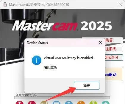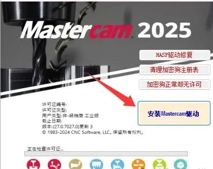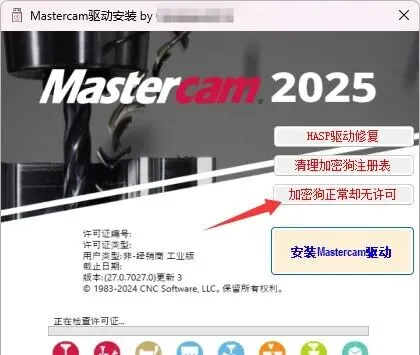 关闭软件,继续回到Crack文件夹运行Mastercam驱动安装,这次选择“加密狗正常却无许可”。