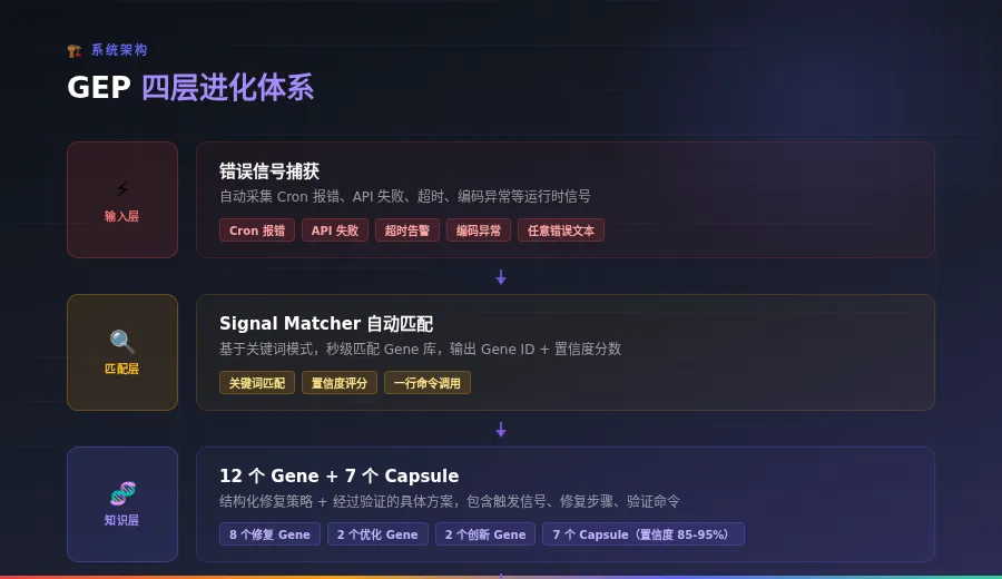 把 AI Agent 的经验结构化为"基因"(Gene),让修复方案可以被自动匹配、复用、继承。