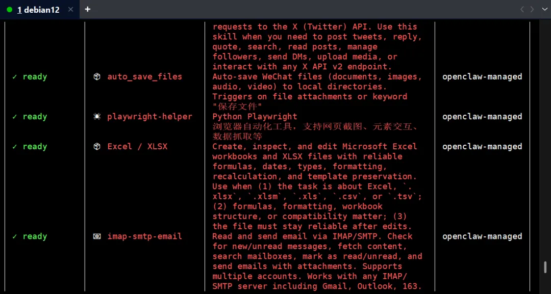●●●code # 重启openclawgateawyrestart# 查询当前技能openclaw skills list