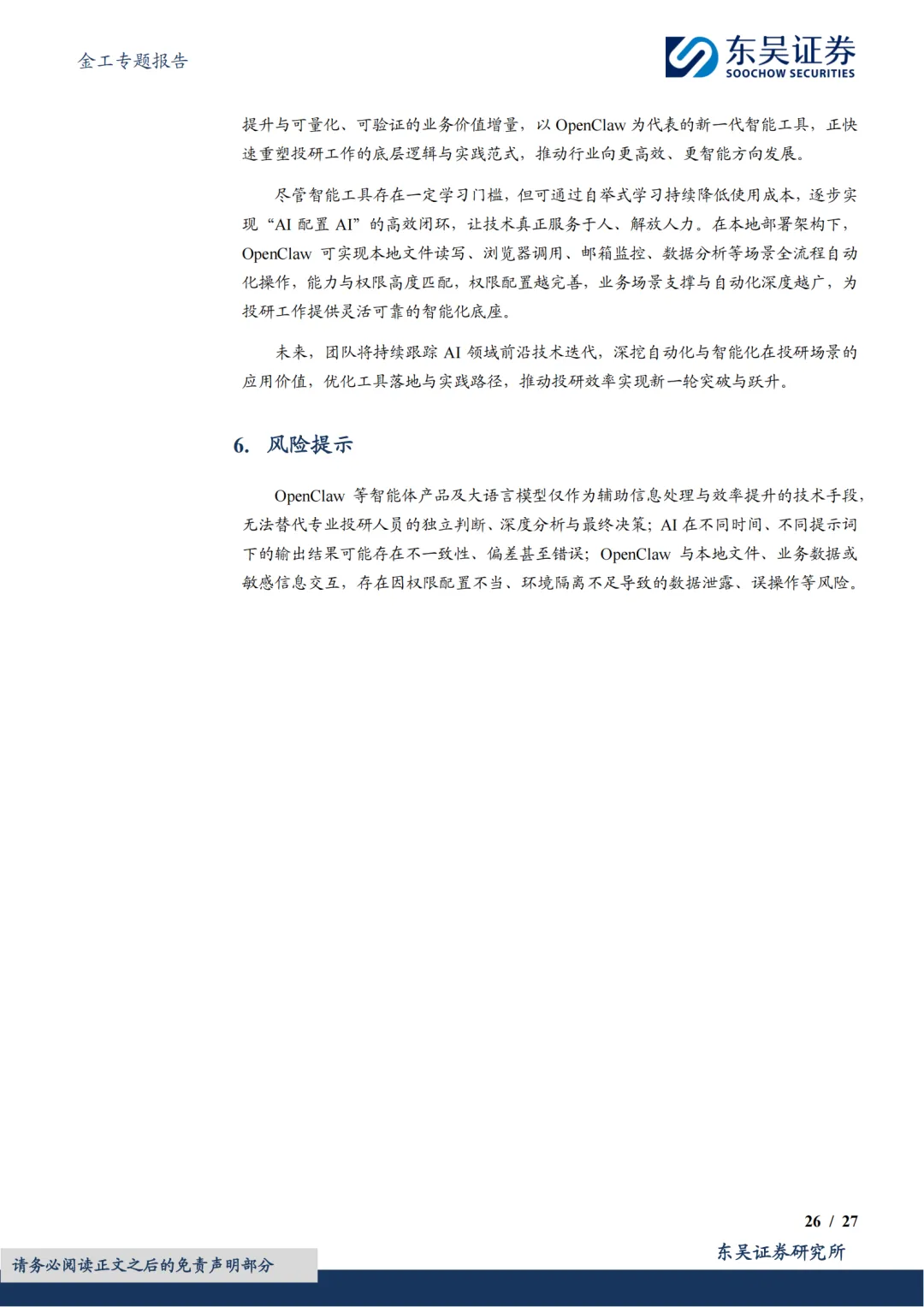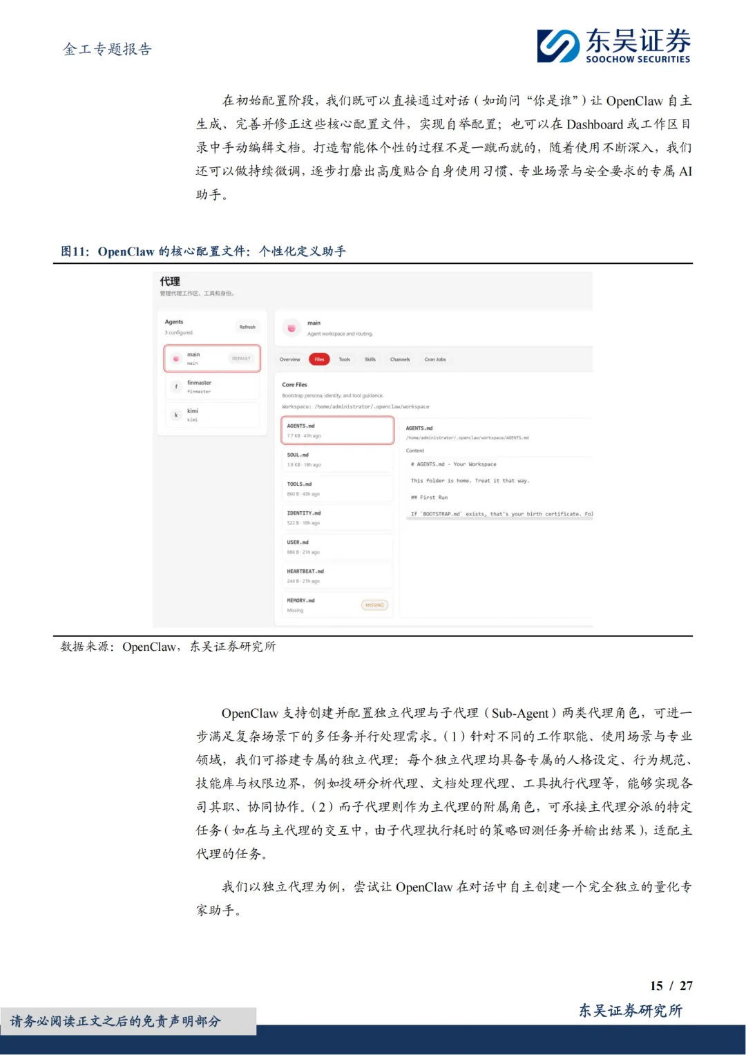 东吴证券这篇报告的结论很直接:OpenClaw目前更适合有一定技术基础、愿意投入学习成本的用户,不是傻瓜工具,但配置到位之后,投资价值报告自动归档、量化回测全流程、定时任务常态化这些事情是真的可以做到的。
