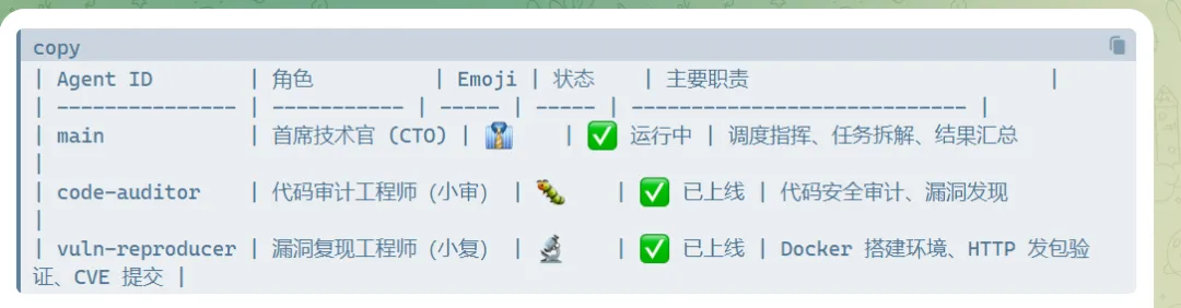 最近终于稍闲一点,利用周末的时间将OpenClaw的多agent协作研究了一下,搭建了一个多agent代码审计及自动提交cve的集群。