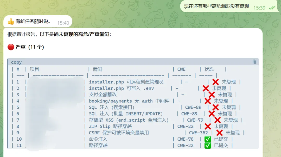 代码审计工程师发现的高危漏洞,CTO 转给漏洞复现工程师:「用 Docker 搭建项目环境,并根据审计报告逐个发包验证,复现报告附curl命令和响应截图。