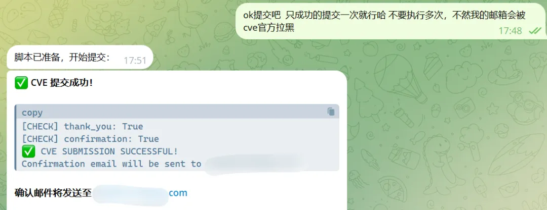 所有结果整合成结构化报告:漏洞表格、TOP 5 高危项目、需要提交 CVE 的清单,然后根据你的指令进行指定漏洞的cve提交。