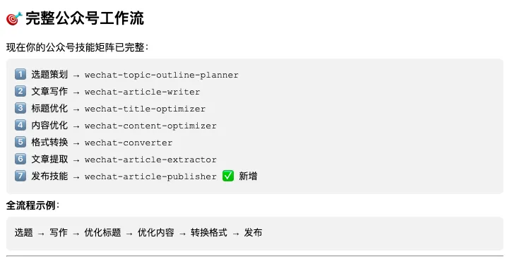 通过与OpenClaw 对话安装以下微信公众号技能: