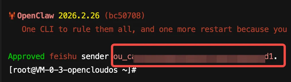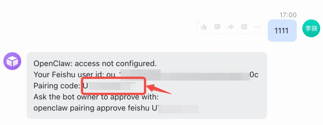 openclaw pairing approve feishu 你的token好,如果他返回的这个“ou_xxx”和飞书聊天中他吐的“ou_xxx”一致,说明成功在即!!🤓