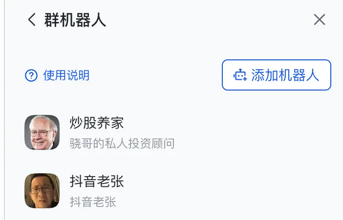 成功后机器人会出现在左侧边栏👌
