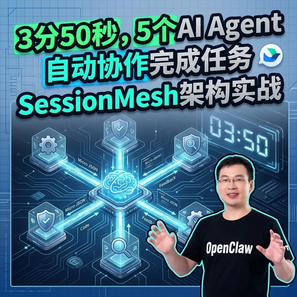 导读:在飞书群里 @一个机器人,它就能自动指挥其他机器人协同完成任务。这不是科幻电影,而是今天就能跑通的工程实践。本文将完整复盘 SessionMesh 架构从一个想法到原型验证的 3 小时全过程,并分享我在实战中踩过的 5 个坑以及对应的解决方案。