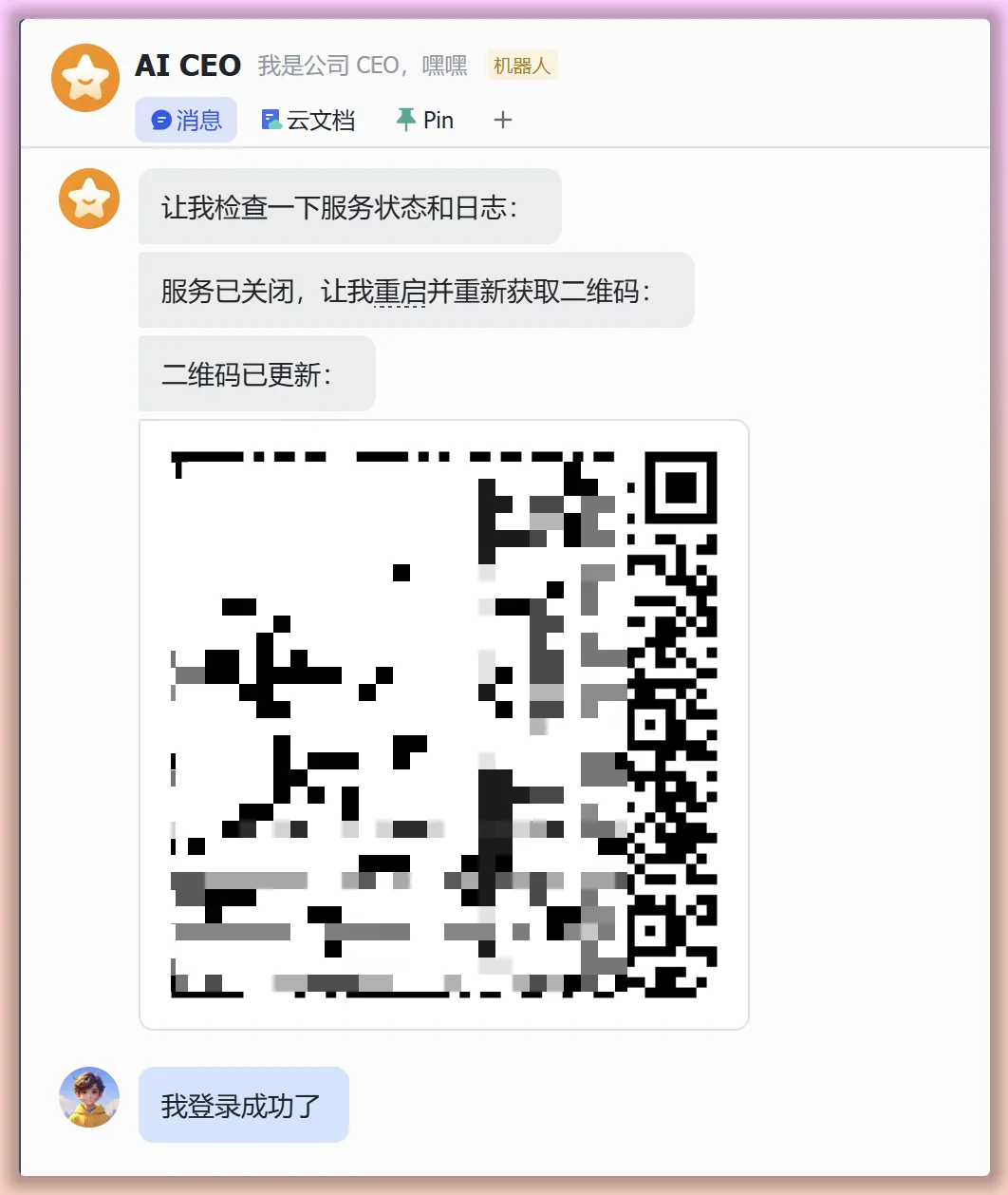 这时 AI 会启动一个服务,然后弹出一个二维码,