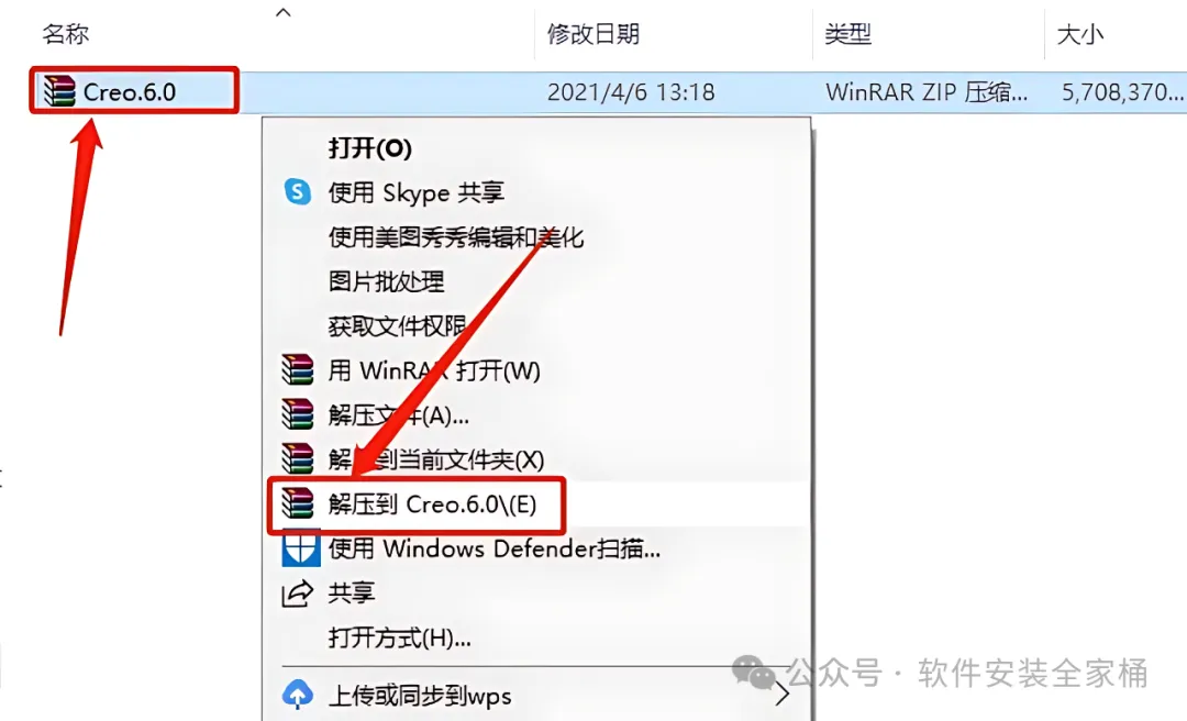 1.打开下载的Creo6.0软件安装包,鼠标右击压缩包选择【解压到Creo6.0】。