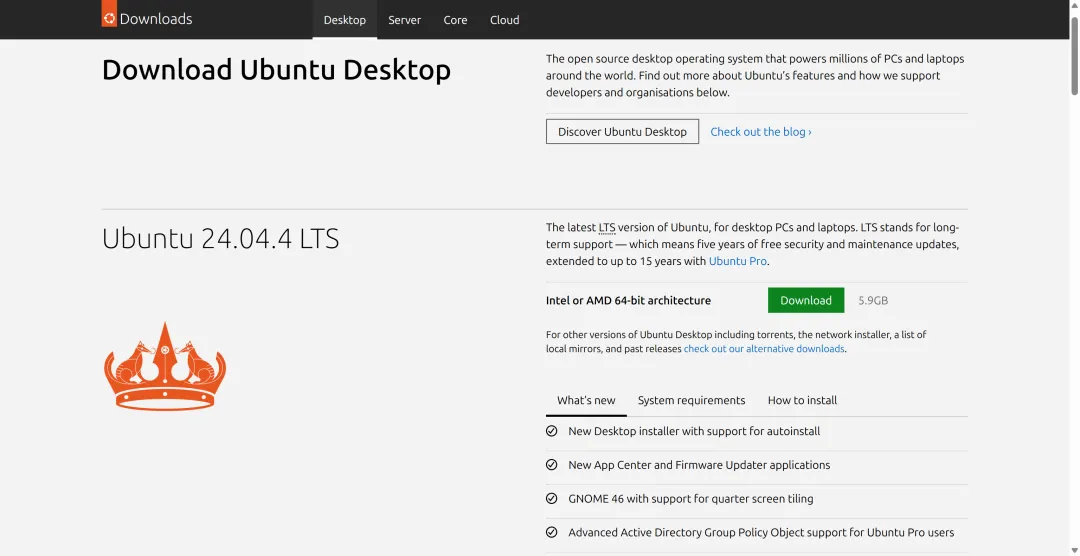 - 打开浏览器,去Ubuntu官网:ubuntu.com/download/desktop