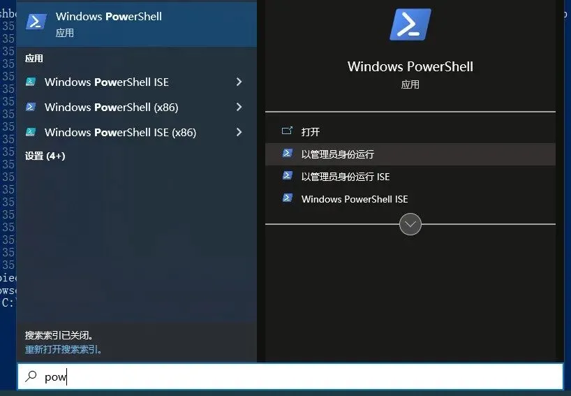 以管理员身份运行PowerShell