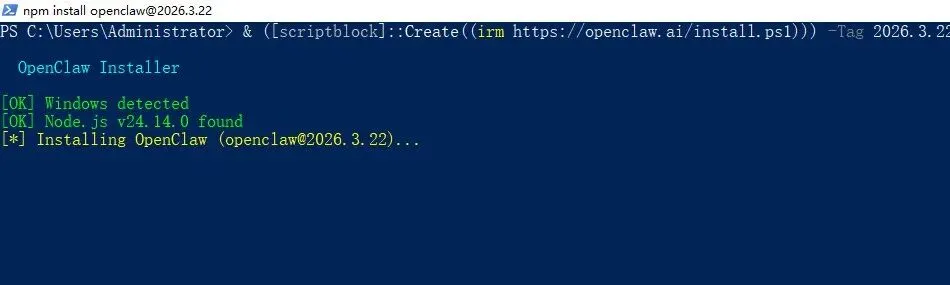 & ([scriptblock]::Create((irm https://openclaw.ai/install.ps1))) -Tag 2026.3.24