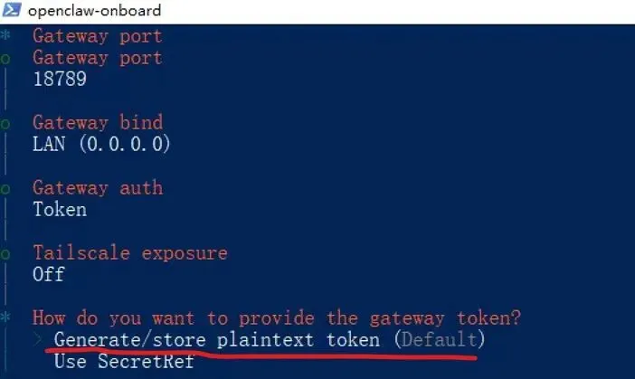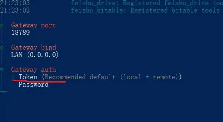配置Gateway认证方式(默认使用 Token), 回车继续