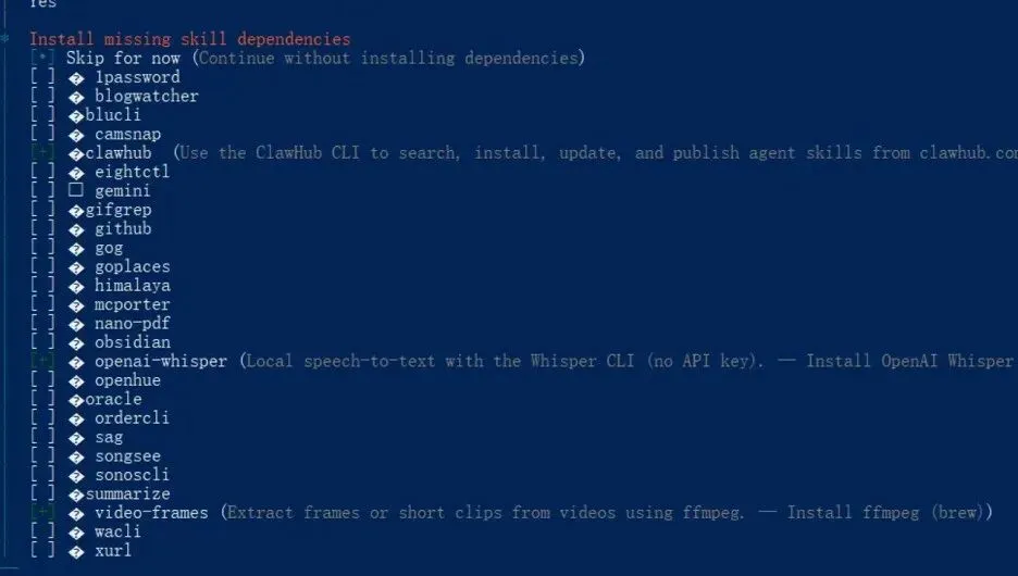 选择需要安装的Skills(可自由选择), 回车继续