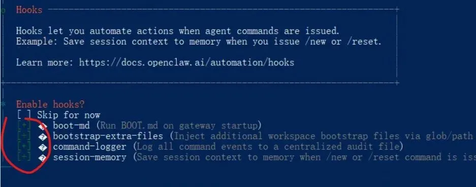 开启Hook , 选择以下项, 回车继续