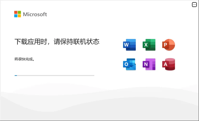 4、等待安装完成,安装完成后不要打或退出Office软件