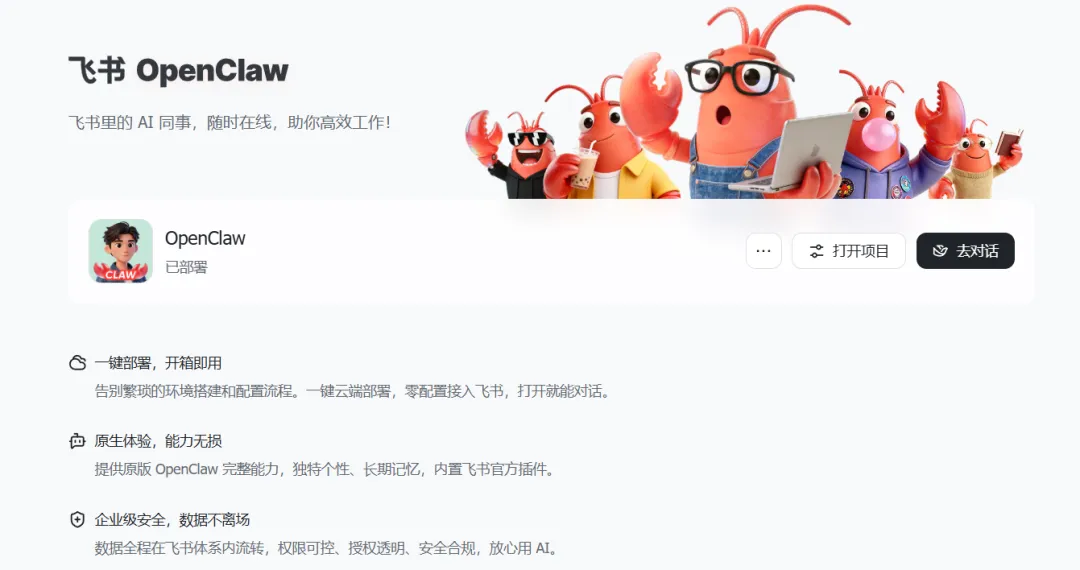 这一步是核心。借助最新的飞书妙搭,可以一分钟云端部署OpenClaw。接进去之后,OpenClaw 就能读写飞书多维表格,真正成为你的"第二大脑"!!