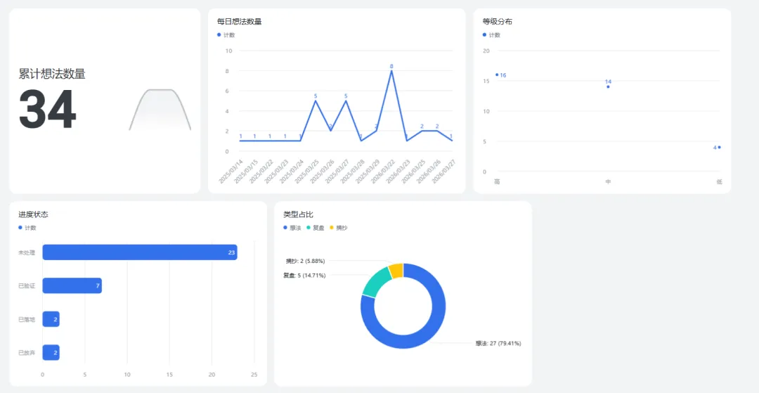 累计想法数量:到现在为止,一共记录了多少条灵感