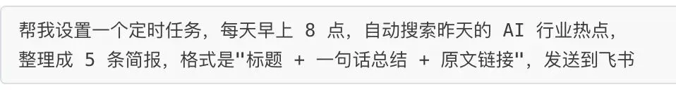 痛点:有些事情需要每天定时处理,比如汇总当日资讯、自动生成日报、定时备份文件。