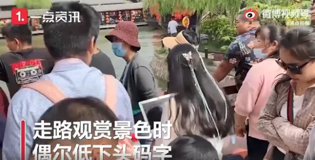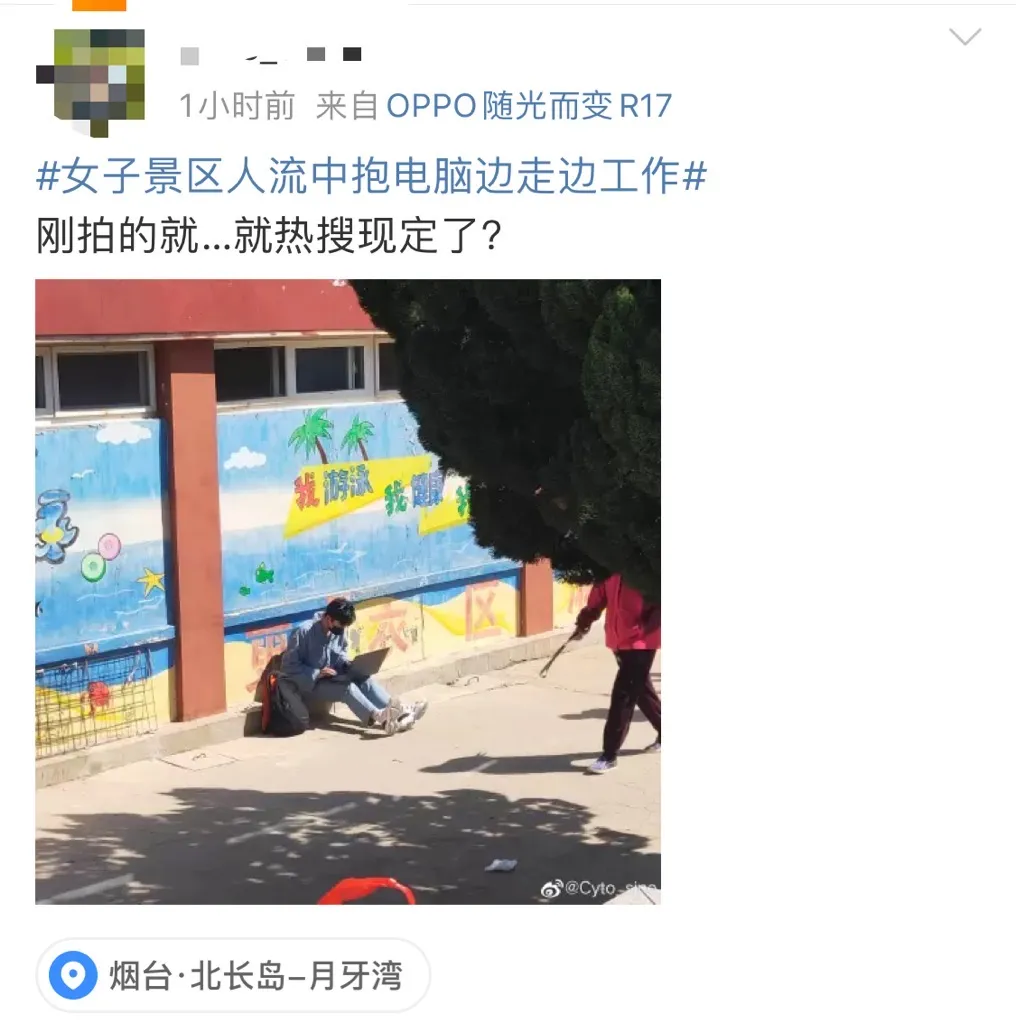 冲上热搜!女子景区人流中抱电脑边走边工作,网友:太有共鸣了来源:沸点视频、潇湘晨报、网友评论版权归原作者所有,如有侵权请及时联系“五一”假期第二天你在哪个景区?5月1日,在河南开封清明上河园景区里,一女子“走马观花”式的旅游方式火了 已关注 关注 重播 分享 赞 视频详情 只见她穿着汉服抱着一台电脑走路观赏景色时偶尔低下头码字据了解,该女子是在处理工作,自己是带着“任务”出来旅游的。但“要是让领导看到我出去玩还干活,……”其男朋友说,他们是有假期的,这次是想趁着假期出来转转。很快,视频冲上了热搜也引发了众多网友共鸣同时也有网友调侃,这说明我们网络到哪儿都很快,姑娘也生动诠释了“劳动节”。其实,“旅游到一半还得加班”相当常见,清明假期时,爬长城到一半掏出电脑加班也曾登上过热搜。网友晒图称在长城上加班网友纷纷晒出自己同款加班图,如海边悬崖加班照、KTV包间加班照、长隆旅游加班照……@旺旺一小猪:是时候祭出我这张海边悬崖加班了@别怕我来carry:就算在夜店,该加班还是得加班。@脆皮长:我也试过在乐山大佛的寺庙做过这种事。@我還以為睡不醒了呢:垃圾桶调试员来集合。对此深有共鸣的来点朵小花了↓↓↓